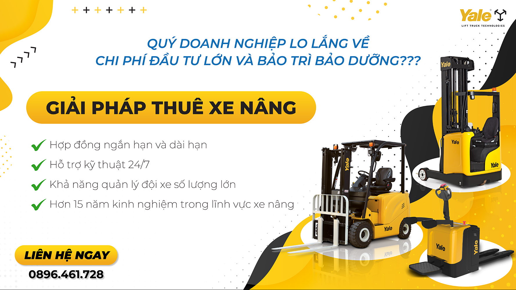 Xe nâng Yale Việt Nam tâm niệm rằng sự tin tưởng và ủng hộ của Khách hàng trong gần 20 năm qua chính là vì chúng tôi tạo ra được sự khác biệt bởi sự nhiệt tình và sự uy tín đối với Khách hàng.